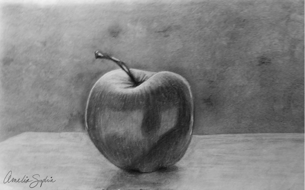 Behold, my apple drawing! Tada! It's an apple. I used sketchbook paper, various pencils, erasers, and a trusty smudger (I'm a fan of smudging!)
