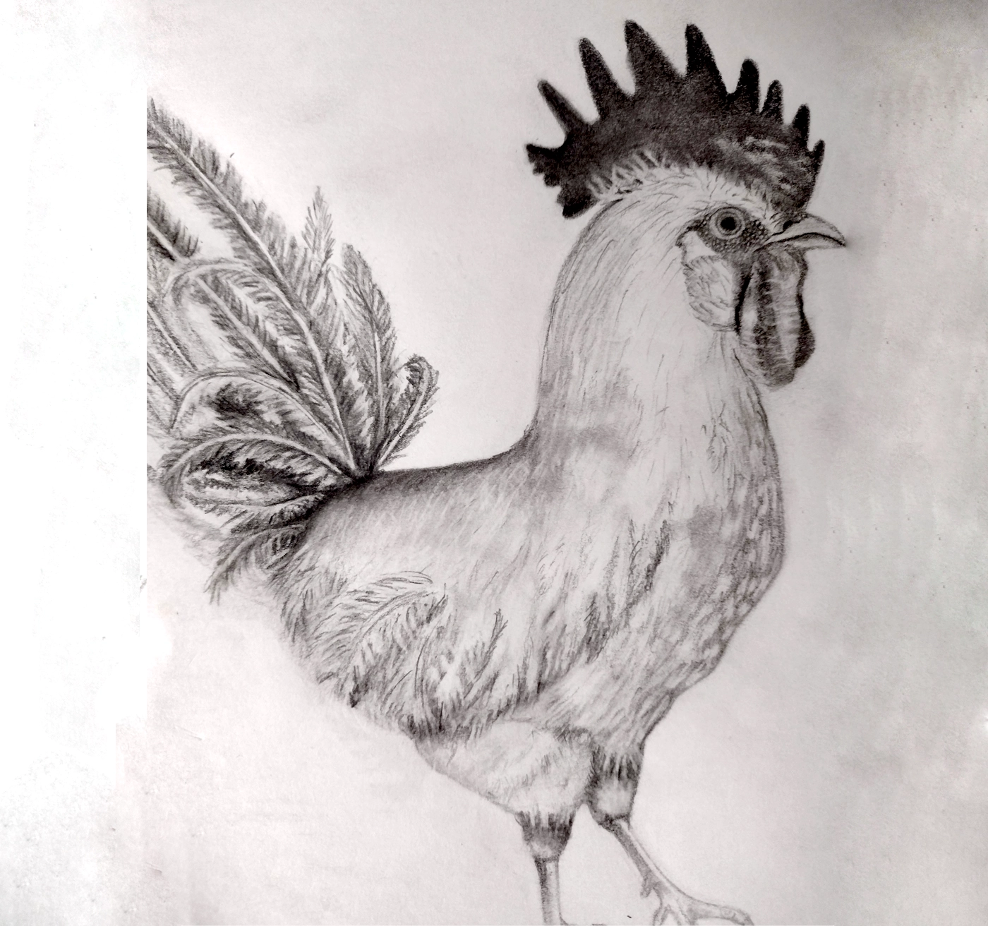 Welcome to my rooster. Hand drawn by me, Meelie! Made on paper with a pencil.