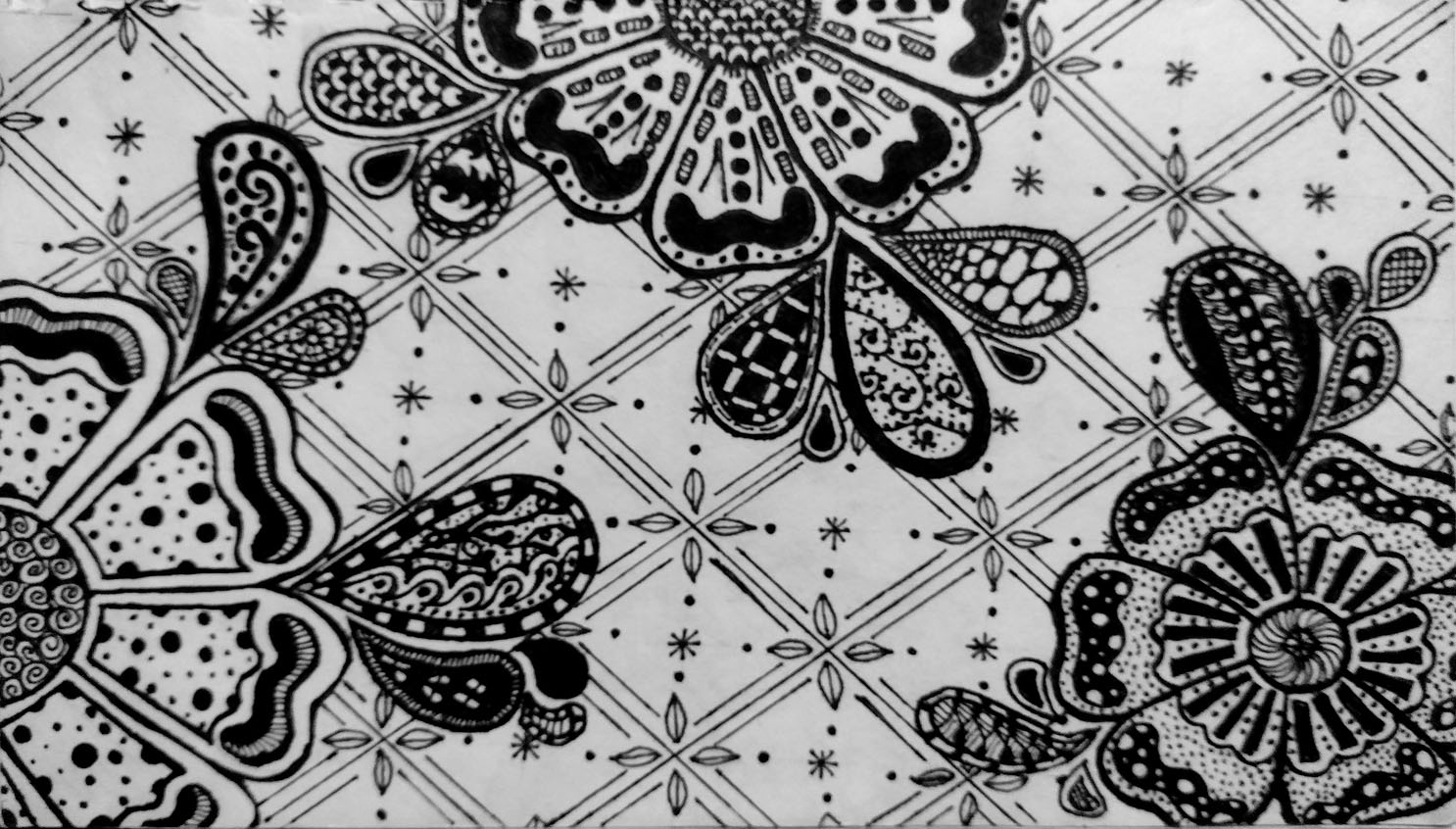 This is right out of my sketchbook. I really love filling in all the spaces with shapes and shades. I find comfort in creating art like this. I made this on sketchbook paper with a mechanical pencil. I then traced over everything with a fine point sharpie.